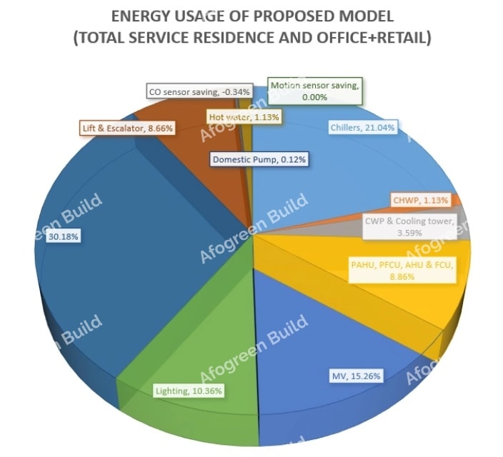 Through energy simulation, the stakeholders can see how various options of layout, building materials, lighting system, mechanical ventilation, air conditioning, building controls, and occupancy have different impacts to annual energy consumption. Comparison can be made for several scenarios to see which materials, systems, and equipment selection will be able to achieve the targeted energy consumption.