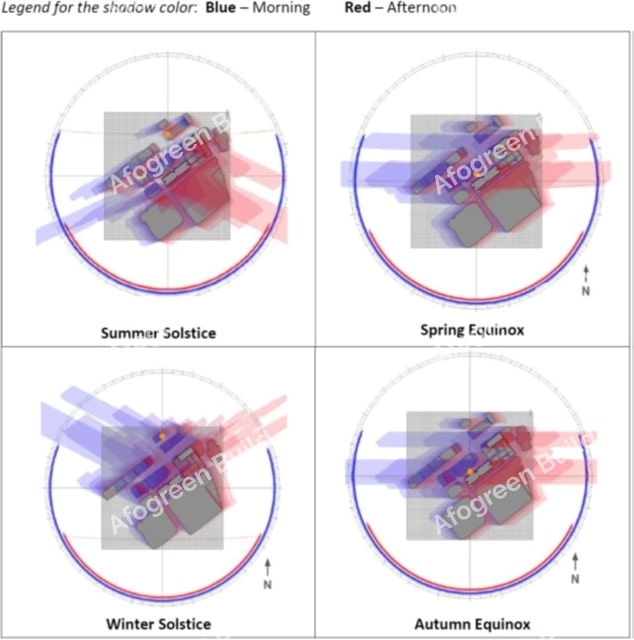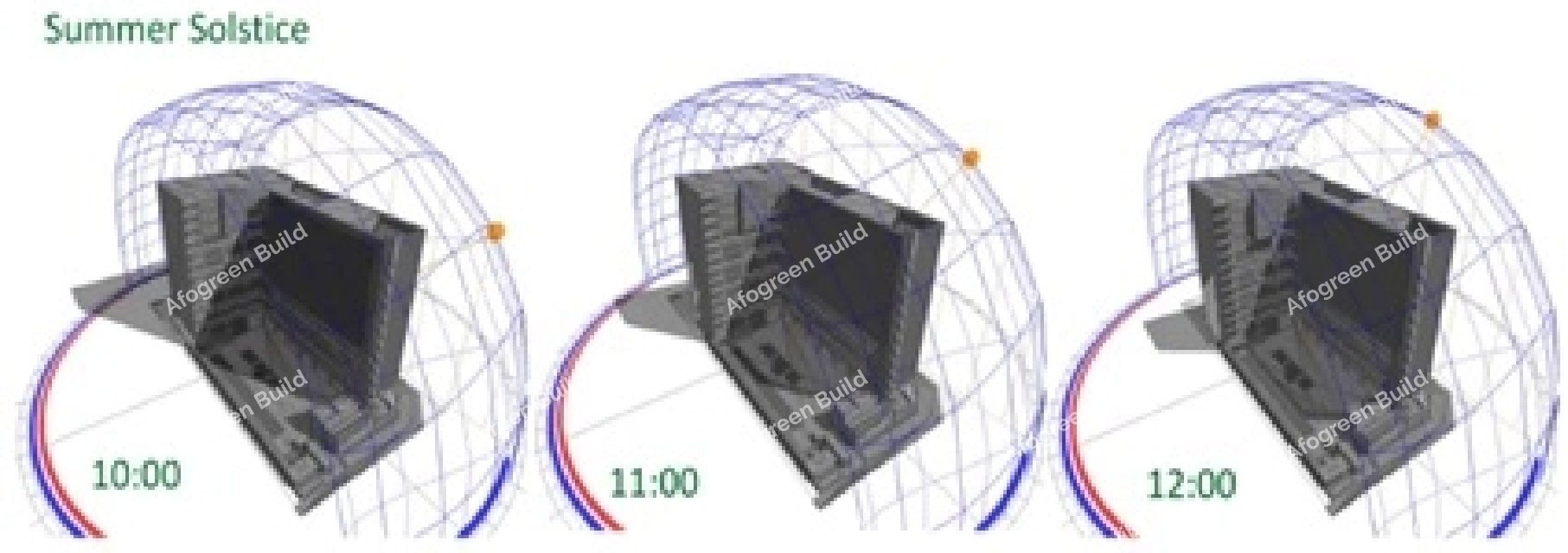 Sunpath analysis also reveals which area are shaded and exposed most of the time, which area can be used for social activities, which area shall be planted with big trees, or provided with canopies or shelters.